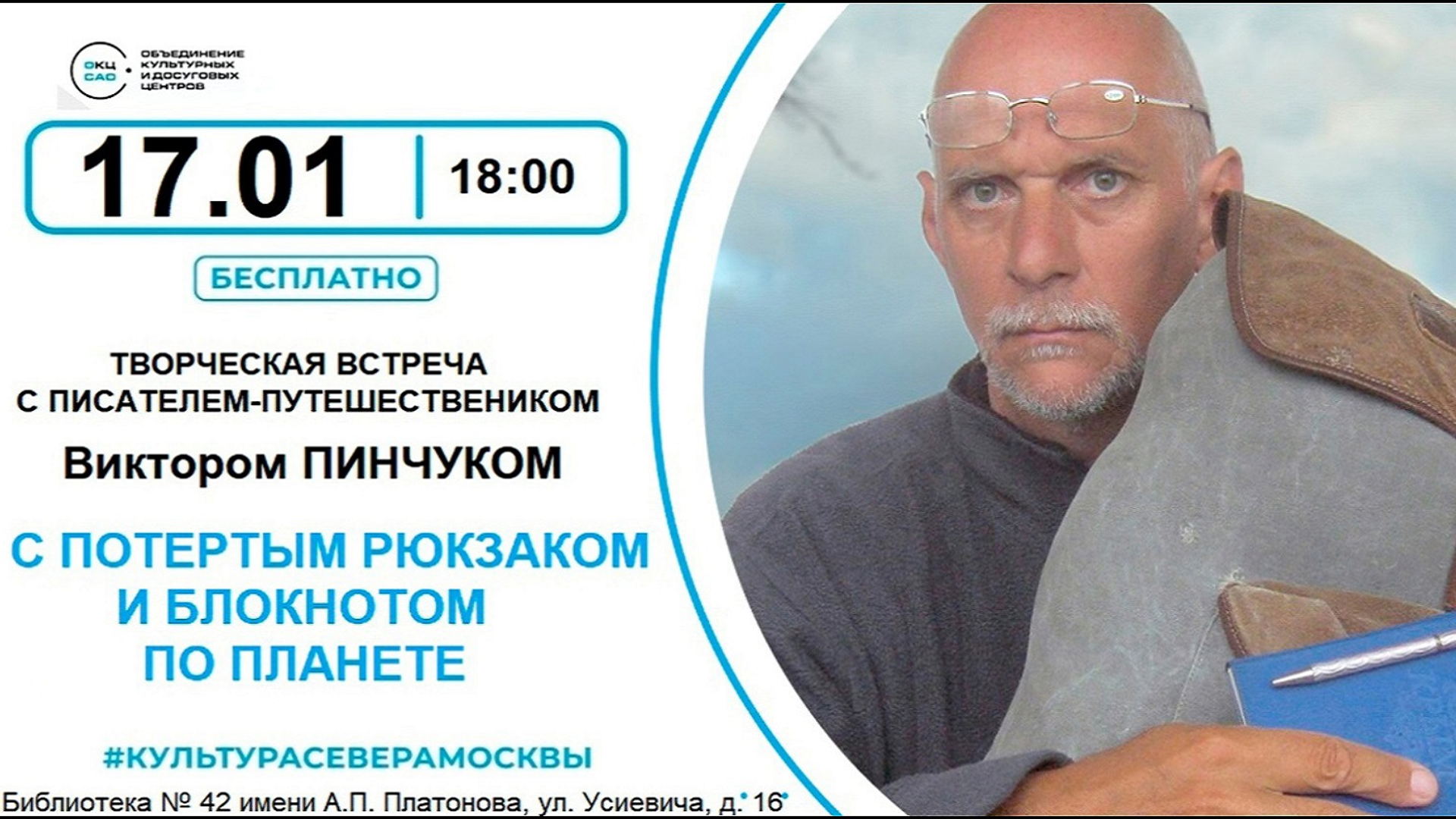 17 января 2026 года в библиотеке им. А. П. Платонова, расположенной на ул. Усиевича 16, пройдёт творческий вечер российского путешественника, посетившего в разное время свыше 60-и стран Африки, Азии, Океании и Латинской Америки.